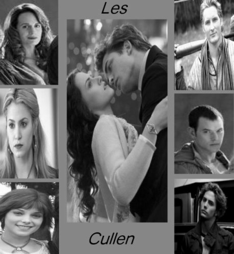| presentation des personnnages: Isabella Swan: Bella vivait avec sa mère à Phoenix ville ensoleillée, jusqu'au jour où elle décida d'aller s'installer chez son père à Forks, afin de laisser un peu d'intimiter à sa mère et son nouveau mari. Malheureusement, elle déteste cette ville où le froid et la pluie son permanant. Elle aime la lecture (Les Hauts de Hurlevent, Roméo et Juliette...). Elle aime aussi la solitude et la discrétion, chose difficile à Forks. Elle n'a pas confiance en elle, et est d'une grande maladresse. Elle attire également les ennuis, plus que la moyenne. Elle est naïve, sensible et peut avoir très mauvais caractères. A Forks, elle rencontrera Edward Cullen, dont elle tombera amoureuse. C'est à partir de ce moment que sa vie sera boulversée, mais elle ne regrettera jamais sa décision. Car en effet, Edward est un vampire! Edward Cullen: Edward fut transformé en vampire par Carlilsle, alors qu'il était en train de mourrir de la grippe espagnol. Depuis ce jour, il ne l'a quasiment jamais quitté, le considérant comme son père. Sa famille et lui sont l'un des très rare clan de vampires "végétariens" (c'est à dire qui ne touchent pas aux humains). Il restera très solitaire jusqu'à sa rencontre avec Bella. Bien qu'au début, il ne souhaitait rien d'autre que la tuer (car le sang de celle-ci à une emprise particulière chez lui), il parviendra à se contrôler, et s'attachera à elle. Depuis, son existence est entièrement dédiée à celle-ci. Il fera tout pour son bonheur et pour la protéger, quitte à souffrir. Note: Edward à le pouvoir de lire dans les pensées, exepté celles de Bella. Carlisle Cullen: Fils d'un prètre anglican, il fut élevé dans le respect de le religion et la chasse aux monstres. Il fut transformé lors d'une chasse aux vampires qui tourna mal. Réalisant ce qu'il était devenu, il lutta contre sa soif et fit tout pour se détruire, dégouté de lui-même, du monstre qu'il était devenu... Mais en vain. Il finit par accepté son existence en se rendant compte qu'il pouvait survivre sans être un monstre. Il décida donc de lutter contre l'odeur du sang, et devint "végétarien". Ainsi il pu étudier et finit par devenir médecin. Après plusieurs siècles de solitude il décida de se créer un compagnon, bien que l'idée le répugne d'infliger son sort à un autre. C'est ainsi qu'il rencontra Edward à la limite de la mort et se décida. Esmée Cullen: Esmée fut transformée par Carlisle alors qu'elle venait de se jetter d'une falaise pour mettre fin à ses jours. N'étant pas morte sur le coup, il l'a morda. Depuis, elle reste à ses côtés, étant son épouse. C'est une personne aimante, et elle considère Edward, Alice, Jasper, Emmett et Rosalie comme ses propres enfants et aussi Bela par la suite. Alice Cullen: Alice n'a aucun souvenir de sa vie humaine. Lorsqu'elle s'est éveillée vampire, elle eut la vision de Carlisle et de sa famille, ainsi que de Jasper. Elle parti donc à la recherche de celui-ci, qu'elle ne quitte plus depuis, avant de rejoindre le clan des "végétariens". Elle apprendra par la suite qu'humaine elle était internée en hopitale psychiatrique à cause de ses visions. Elle fut transformée par un vampire qui s'était épris d'elle et voulait la sauver d'un traqueur, James. Alice est joyeuse et toujours enthousiaste. Elle est très proche de Bella pour qui elle a une amitié très forte, et elle fut la première a soutenir Edward dans la voix difficile qu'il avait choisi. Jasper Hale: Jasper fut transformé lors d'une de ses missions en tant que soldat. Il fut élevé de manière plutôt particulière, entraîner pour tuer dans une guerre entre vampires. Lassé et horrifié de cette vie, il ne souhaite plus tuer. Il finira par s'enfuir. C'est là qu'il rencontrera Alice, qui l'attendait. Lorsqu'elle lui parla de sa vision sur Carlisle et les siens, sur leur mode de vie, il décida de partir avec elle. Il est celui qui a le plus de mal à contrôler sa soif, bien que cela lui fait horreur. Il est aussi très protecteur avec Alice, avec qui il est en couple. Note: Jasper a le pouvoir de contrôler et de ressentir les émotions des personnes qui l'entoure. Emmett Cullen: Emmett était en train de chassé lorqu'il fut attaqué par un ours et gravement blessé. Trouvé par Rosalie, celle-ci s'attendrit sur lui et décida de le sauver. Elle le porta jusqu'à Carlisle afin qu'il le transforme. Depuis il est en couple avec elle. Plus fort que ses frères et soeurs, il est toujours partant pour qu'il y est de l'action. C'est aussi le grand comique de la bande. Rosalie Hale: Rosalie fut transformée à l'origine afin d'être la compagne de Edward, mais tout deux ne se sont jamais considéré que comme des frère et soeur. Elle sauvera plus tard Emmett avec qui elle se marira (plusieurs fois de suite d'ailleur). Rosalie est une femme très belle, se qui la rend vaniteuse et plutôt superficielle. Elle sera celle qui à le plus de mal à accepter Bella, car elle est jalouse de celle-ci: elle aurait aimer rester humaine alors que Bella est prète à sacrifier son humanité pour devenir vampire et rester avec Edward, ce qui la rend folle. Ellle encourage Bella à garder son enfant alors qu'ell est en train de mourir. Jacob Black: Jacob Black est un indien de la Push. Il est le fils de Billy Black, le meilleur ami de Charlie, le père de Bella. Joyeux de nature il transmet celle-ci partout autour de lui. C'est lui qui révèlera à Bella la vérité sur Edward et sa famille. Très attaché à elle, c'est lui qui l'aidera à sortir de sa dépression lorsqu'Edward partira. Elle ne le considère que comme son meilleur ami, mais lui espère plus. Il se révèlera être un loup-garou, ennemi des vampire. Malgrès cela, Bella continura de le voir. Au retour d'Edward, il fera tout pour que Bella le choisisse. il l'arrière petit-fils d' Ephraïme Black et se révelera etre le véritable Alpha de la meute. not